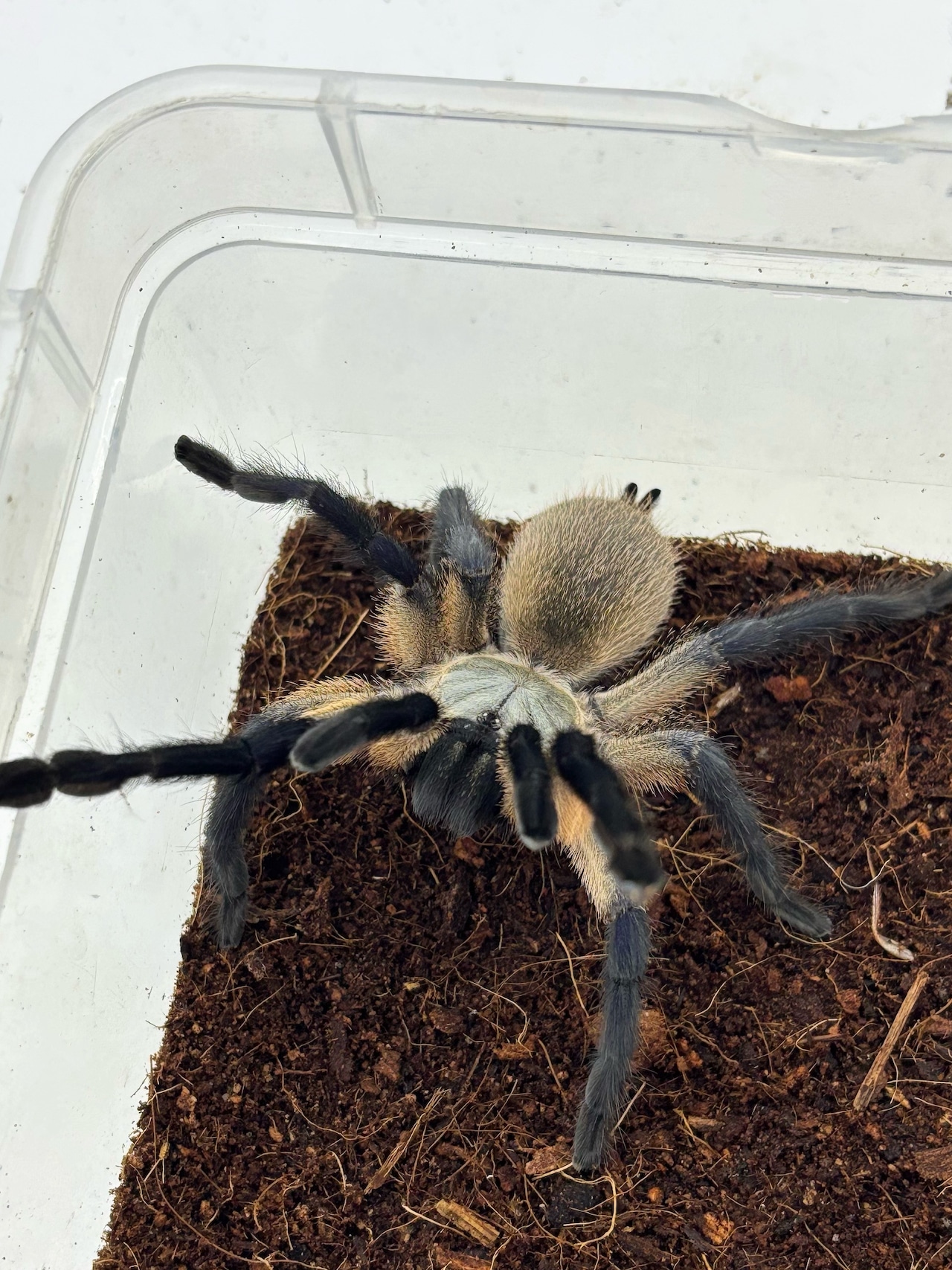 今回は甲長約3〜4cmの画像の個体を発送させていただきます。足が一本かけておりますが、脱皮を繰り返すと復活します。